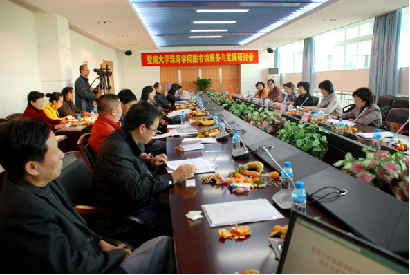 2008年12月23日下午,暨南大学珠海学院图书馆服务与发展研讨会顺利召开,暨南大学副校长纪宗安、暨南大学图书馆馆长朱丽娜、珠海学院党委书记刘渝清、珠海学院副院长张江河、暨南大学图书馆信息咨询部主任李祁平以及珠海学院各系、部、所、职能部门负责人和珠海学院图书馆的全体工作人员参加了研讨会。